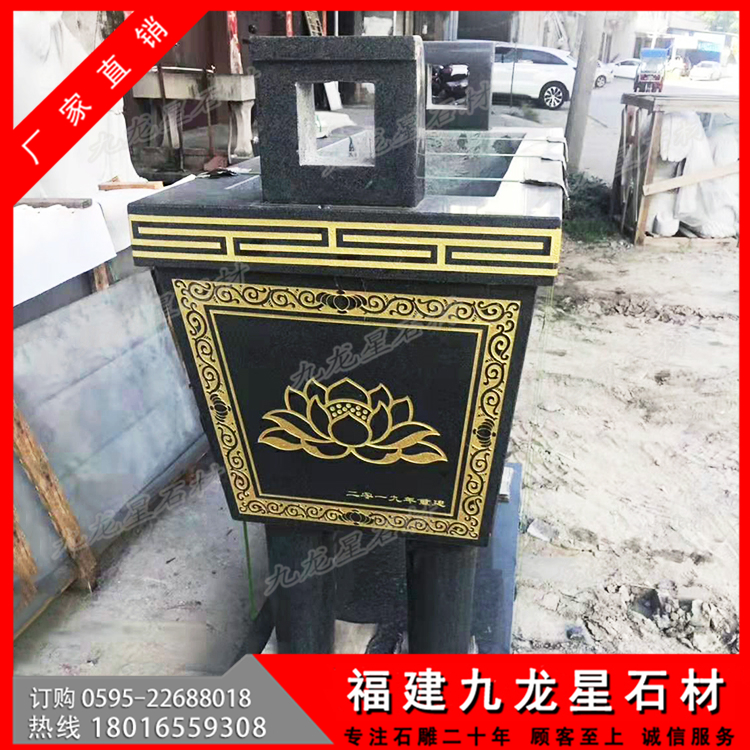 石雕香爐的制作石材通常是優(yōu)質(zhì)顏色偏深的花崗巖石料和青石石料,青石本身顏色呈現(xiàn)青色,較為古樸,青石石雕香爐突顯了整個香爐的莊重氛圍,為佛教圣地增添了幾分威嚴(yán)。石雕香爐的外形分為圓口、方形口、長方形口,圓口香爐一般是三足兩耳,方形香爐一般是四足兩耳,長方形香爐一般也是四足兩耳,還有少許兩層石雕香爐。