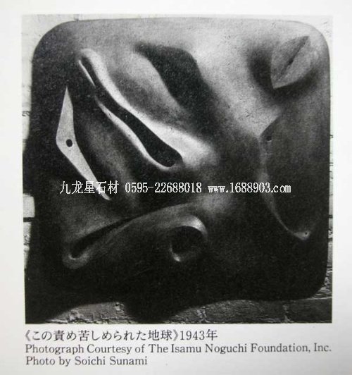 1996年3月我在東京第二次看野口勇雕刻展覽,盡管那時我已經(jīng)認(rèn)識到他是一位重要的雕刻家,但是對野口勇的認(rèn)識還是相當(dāng)模糊,然而兩個月之后,在看"野口勇和路易·康(Louis Kahn)"展覽時,一件1943年創(chuàng)作的黑色銅雕"被蹂躪的地球"讓我覺醒,這件作品讓我生出想去撫摸的感覺,(在這里說可能不太文雅,但是我必須誠實(shí)地講出來才有說服力,那就是我看美術(shù)館中無人,就閉著眼睛去“撫摸”這件雕刻,那時通過手傳達(dá)給我就象在撫摸戀人身體的感覺)這是野口勇雕刻的官能性對我的誘惑。野口勇的雕刻從日本和中國的傳統(tǒng)文化的空間美學(xué)中獲得啟示,同時還通過東方書法和日本陶藝讓我們獲得對身體的感受。