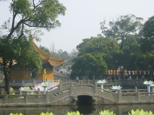 海印池東橋名“永壽”拱橋明歷三十四年(1606)太監(jiān)張隨所建。永壽橋又名蓮花橋,橋脊高拱,如虹臥波,與東邊的多寶塔相呼應(yīng)。海印池在普濟(jì)寺山門(mén)前,也稱(chēng)“放生池”、“蓮花池”,始建于明代。這與奉化溪口雪竇寺的布局極為類(lèi)似,只不過(guò)佛教建筑顯得更為古撲。