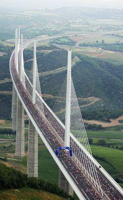 如果擔(dān)心高度過(guò)高,你可能不會(huì)選擇穿越法國(guó)南部的米約大橋,這座大橋跨越塔恩河谷至米約地區(qū),是當(dāng)今世界上最高的車載交通大橋,其最高點(diǎn)距離地面1125英尺。