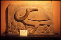 直接表現(xiàn)歌功頌德內(nèi)容的石雕還有“昭陵六駿”浮雕?!傲E”為“又刻石為常所乘破敵馬六匹于闕下”。(《唐會(huì)要?卷二十》)的六件作品。宋游師雄題昭陵圖云:“先葬文德皇后長(zhǎng)孫氏,當(dāng)時(shí)陪葬之盛與夫刻蕃酋之像、琢六駿之像以旌武功,列于北闕,,(,“?!傲E”內(nèi)容完全是夸示武功之作。此種表現(xiàn)形式在后來(lái)各陵中演變?yōu)轳匄B浮雕,不再停留于直接夸示武功的意義而上升到以祥瑞禽鳥顯示帝王英明的象征意義。駝鳥在當(dāng)時(shí)被視為“能瞰鋼鐵”的異鳥,高宗認(rèn)為駝鳥的來(lái)獻(xiàn)是“以太宗懷遠(yuǎn)所致”,“乃刻像于陵之內(nèi)”。(《太平御覽?卷九一四》)與駝鳥相類似的內(nèi)容還有犀牛,獻(xiàn)陵石犀刻有“高祖懷遠(yuǎn)之德”字樣,明確了其設(shè)置寓意。