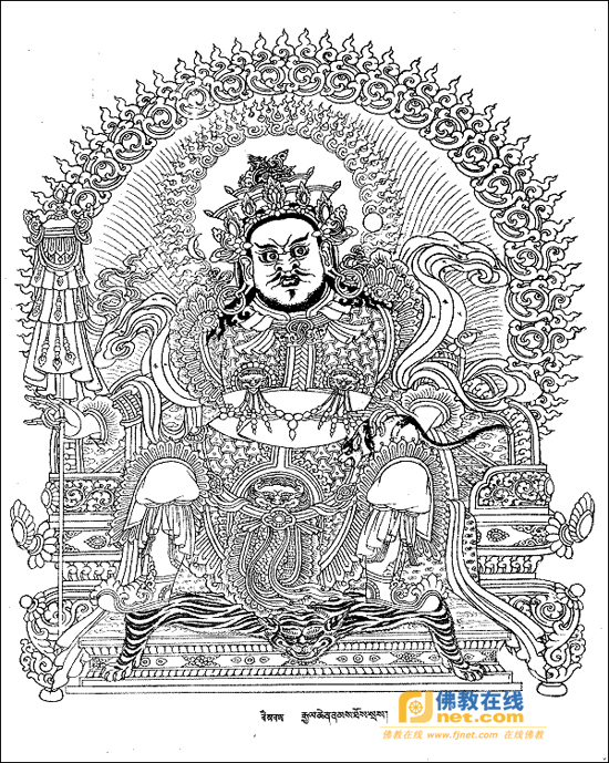 北方多聞天王毗沙門,持寶傘,住北俱盧洲,中國(guó)神話中托塔李天王李靖就是從多聞天王演化而來。
