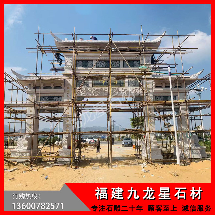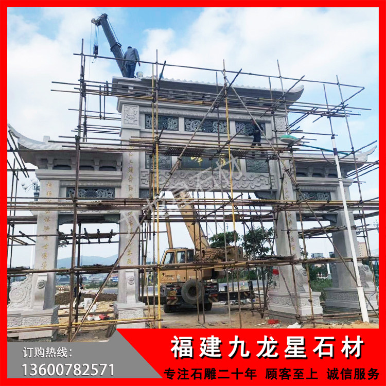 青石石雕牌坊 村口三門石牌坊——福州長樂