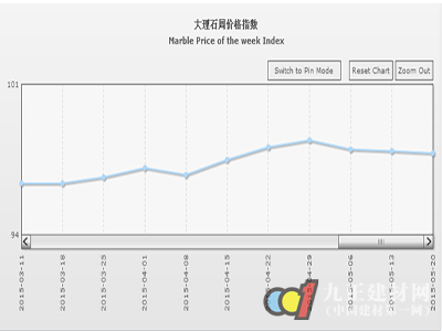據(jù)“中國(guó)·水頭石材指數(shù)”系統(tǒng)監(jiān)測(cè),20150520期石材周價(jià)格指數(shù)收?qǐng)?bào)于98.63點(diǎn),環(huán)比略上浮0.01點(diǎn),上浮約0.01%。本周石材價(jià)格指數(shù)穩(wěn)中微升,其中大理石類價(jià)格小幅下滑,其他石材類價(jià)格環(huán)比持平,花崗石、合成大理石類價(jià)格均有所回升,本周石材價(jià)格總體走勢(shì)平穩(wěn)。大部分品類價(jià)格仍較穩(wěn)定,部分品種價(jià)格隨板面質(zhì)量及市場(chǎng)需求變化小幅波動(dòng)調(diào)整。